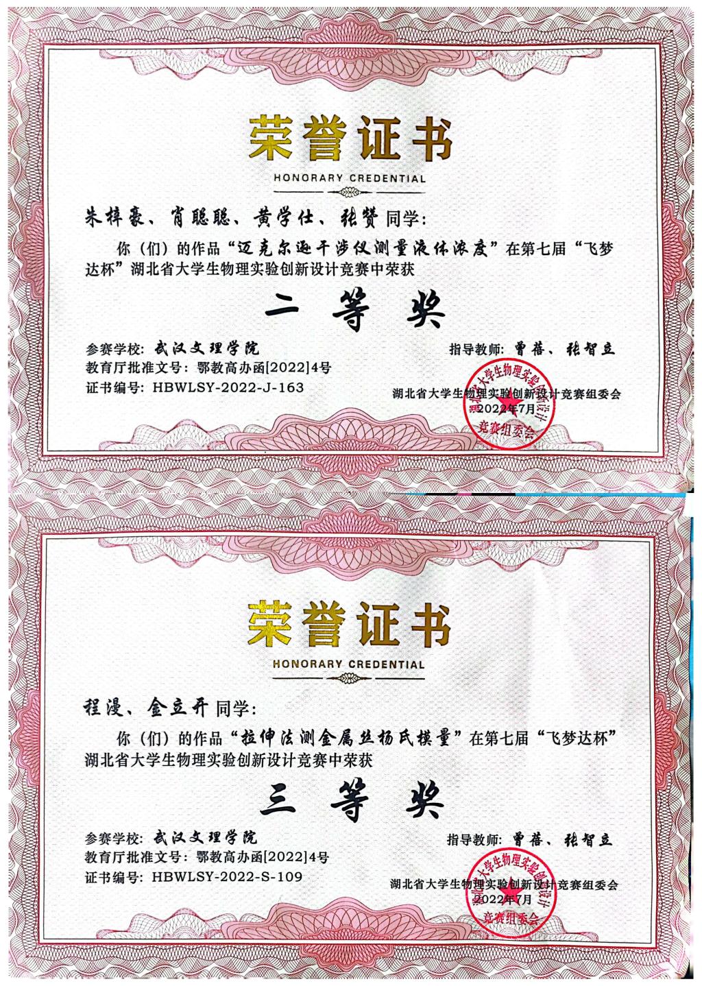 近日,在第七届“飞梦达杯”湖北省大学生物理实验创新设计竞赛决赛中,我院代表队经过初审、网评、现场作品展示与复赛答辩等环节的角逐,获得二等奖1项、三等奖1项的好成绩。