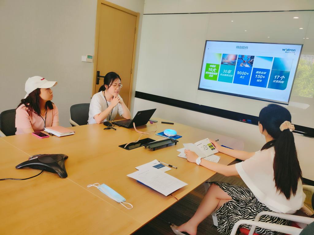 当天,信计学院一行实地考察参观纬创软件(武汉)有限公司花山软件新城园区,与纬创HR以及在岗就业学生进行了交流座谈。