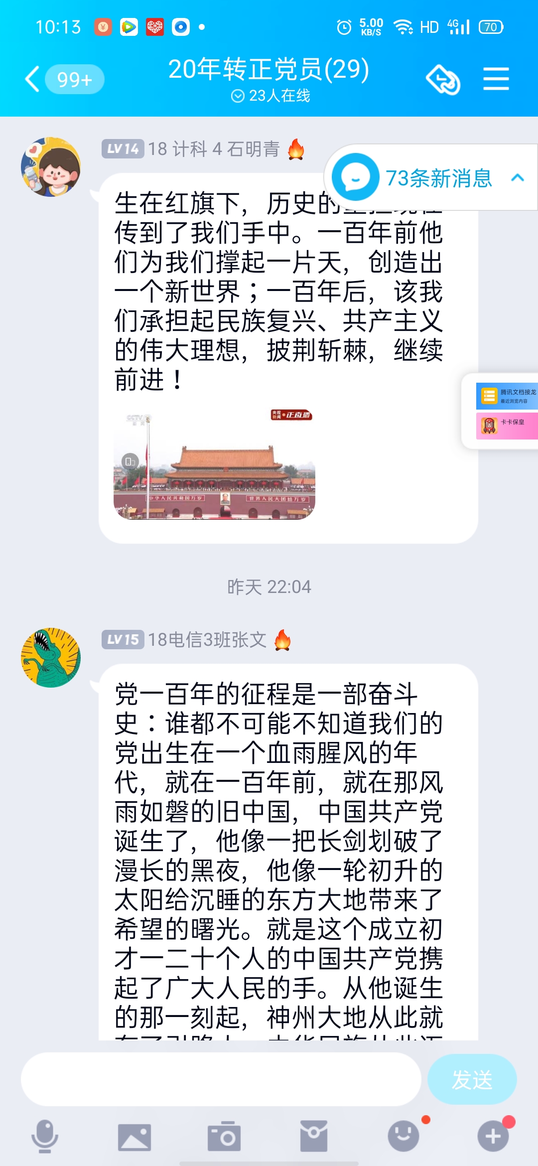 “烽火28年,执政72载,中国共产党是一个国家、一个民族乃至亿万人民的信仰,秉持始终如一的初心和使命,为广大人民谋幸福、谋发展。在疫情面前,广大党员冲锋在前,生命至上,给广大人民带去了希望,给世界带去了希望。在此一百周年之际,祝祖国繁荣富强!”
