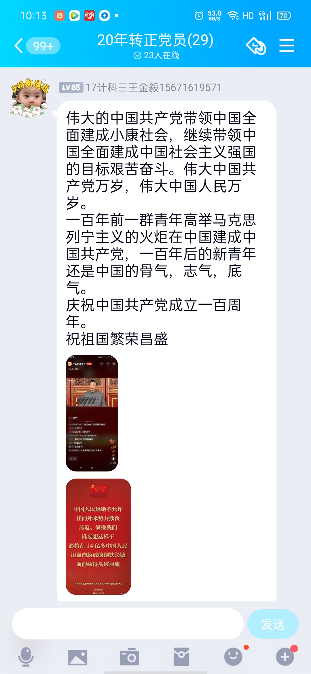 “何其有幸 ,生于华夏,见证百年!愿山河无恙,祖国繁荣昌盛!国泰民安!祝党100岁生日快乐!”