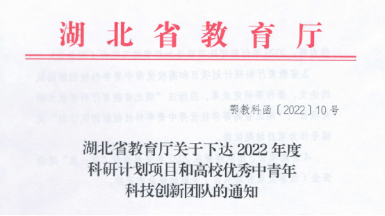 近日,湖北省教育厅下达了《湖北省教育厅关于下达2022年度科研计划项目和高校优秀中青年科技创新团队的通知》【鄂教科函[2022]10号】,我院青年教师张梦申报的《基于优化组合模型的污染排放预测研究》获批科学研究计划指导性项目。