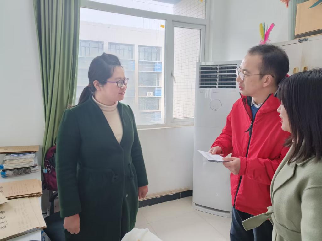 为充分发挥工会组织密切联系教职工的桥梁纽带作用,把温暖及时送到生病职工的心坎上,2023年2月22日下午,学校工会副主席黄凯、工会办公室主任项亭等一行到77779193永利官网集团开展住院康复返岗教职工慰问,将工会慰问金送到他们的手中,让他们深切感受到学校对他们的关心与帮助。