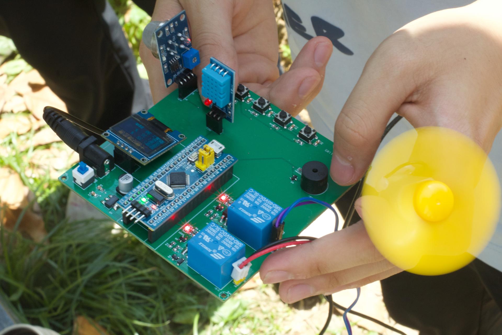依托专业优势,学生们以小组形式开展农业场景创新课题研究。23级电子信息工程彭瀚宇、田朝阳、闫宇升团队基于STM32F103C8T6单片机为核心控制器,设计了一个集环境监测、智能控制与远程通信于一体的农业环境监测系统,可以通过对土壤温度、光照强度的智能监测,帮助农户精准调控大棚环境;算法优化组则基于机器学习模型,分析当地作物生长数据,设计了一套种植密度优化方案,预计可使亩产提升8%-12%。一名参与项目的学生表示:“课本上的聚类算法竟能用来规划农田种植区域,这种学以致用的体验太有意义了!”