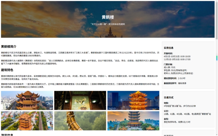 《武汉的元宇宙穿梭指南》是一款以网页为载体、兼具实用性与观赏性的数字化旅游导览作品。作品聚焦武汉文旅特色,通过简洁现代的网页设计呈现城市风貌,涵盖景点导览、文化体验、交通攻略、美食地图等实用信息。作品采用响应式布局,拥有悬浮动效增强视觉层次,时间轴滚动实现信息可视化,以及简约粒子点缀增添趣味性。既为游客提供便捷的出行参考,也为城市形象传播构建了直观的数字窗口。