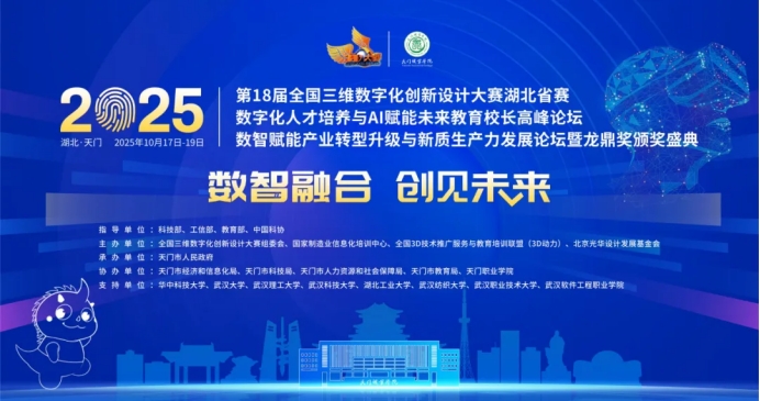 全国三维数字化创新设计大赛为全国普通高校大学生竞赛排行榜榜单赛事,旨在推动数智技术与产业深度融合,加快新质生产力发展。本次大赛以“数智融合,创见未来”为主题,由全国三维数字化创新设计大赛组委会与天门市人民政府共同主办,教育部、工信部、科技部、中国科协等单位指导,吸引全省众多高校和企业参与,覆盖本科生、研究生、高职高专等多个组别。