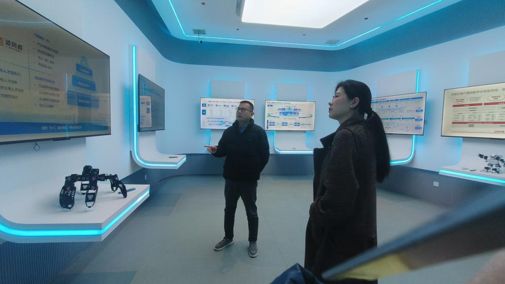 在参观该公司后,武汉造风者教育科技有限公司梅经理详细介绍了公司与高校合作建设思路与方案。学院就数字人才培养、实习实践、推荐就业等与企业交换了意见。武凌书记表示,双方有着良好的合作契机和意愿,希望双方加强沟通对接,找准契入点把现阶段可行的合作先建立起来,再逐步推进合作深入发展。