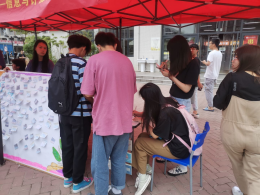 紧接着,第一个小高峰来了。一眨眼的功夫,大本营前面就排起了长队。有的同学是来观看海报,有的同学积极咨询活动内容……所有的问题,我们的工作人员们都一一解答。