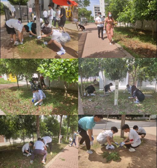 活动中大家愉悦地交谈着,也暗暗相互比较着,整个校园一时间弥漫着欢声笑语,充满了争、比、赶、超的气氛。杂草密密麻麻,同学们辛苦工作一下午后,绿树下、草坪上、花坛里的杂草已全部清除,校园一下子变了模样,焕发出勃勃生机。看着干干净净的绿化带,花儿竞相绽放,同学们露出了天真灿烂的笑容,体会到了劳动的苦与乐。