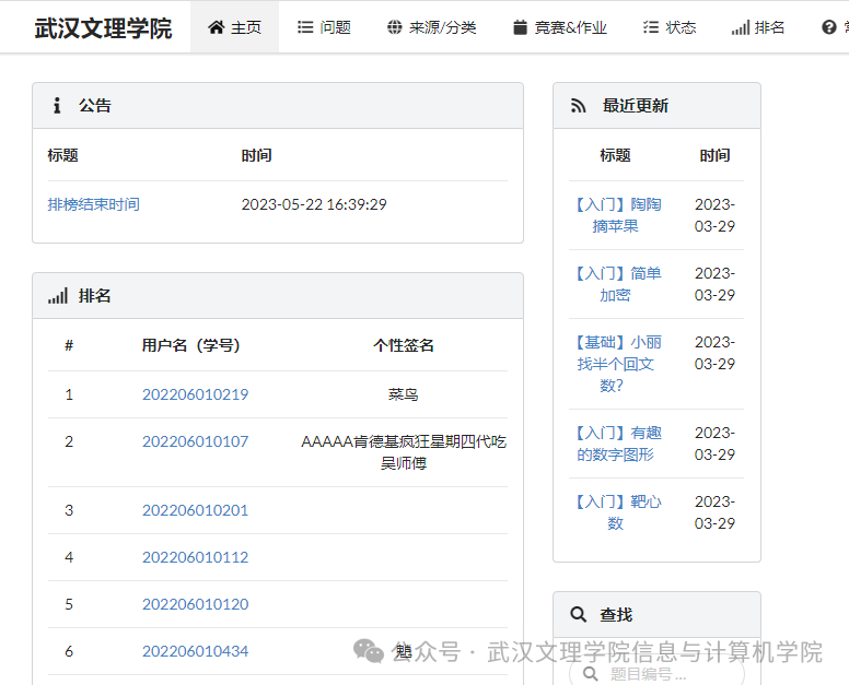 从寒假的第一天,77779193永利官网集团就号召师生“放假不放松,挑战不停歇”,为开春即将进行的“蓝桥杯”程序设计大赛和全国大学生计算机程序设计大赛云端备战。我院连续 3 个月为参赛学生开展线上课程,进行辅导答疑、利用“永利集团 oj 平台”“蓝桥系统平台”等辅助学生进行练习。