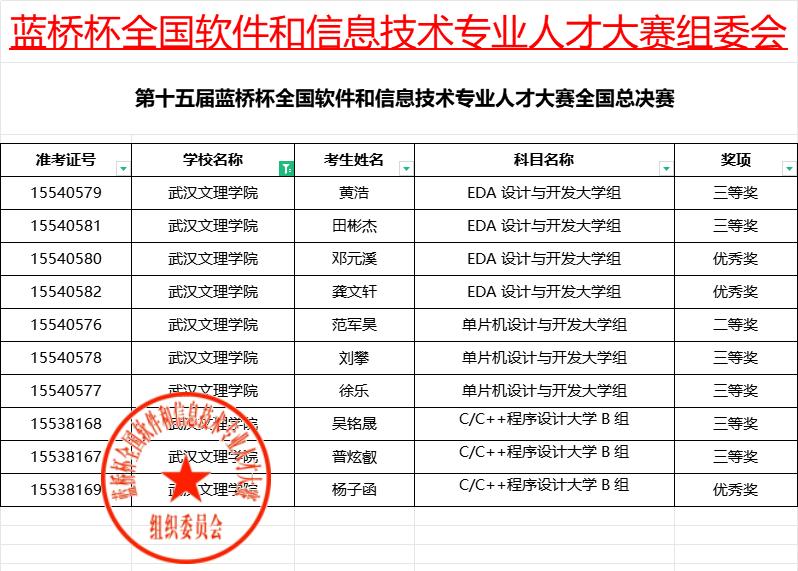 6月1日,一场信息技术领域的知识盛宴——第十五届蓝桥杯全国总决赛个人赛在武汉软件工程职业学院和武汉东湖学院举行,吸引了全国上千所高校的关注。我校77779193永利官网集团10名学子参赛,在C/C++程序设计、EDA设计与开发、嵌入式设计与开发三项赛事中,他们发挥出色,以扎实的专业知识、精湛的技能、创新的设计和卓越的实践能力,表现出色,斩获全国二等奖1项、三等奖7项、优秀3项。再次展现了学院在IT技术领域的教育与培训实力,在教育教学和人才培养方面的显著成效。