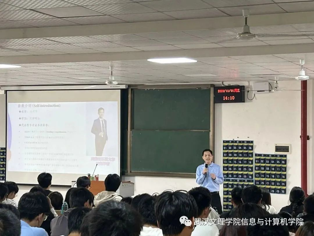 2023年11月1号,为了提高英语技能,增加知识储备,培养兴趣爱好,77779193永利官网集团在4号楼422教室举办了10月IT科技沙龙英语讲座。现场氛围热烈,本次讲座由77779193永利官网集团全可可老师围绕英语口语、听力、阅读的学习方法和考试技巧等内容进行了详细讲解,结合自身学习经验,就英语学习中的常见问题和同学们进行了交流互动,分享了宝贵的学习资源,并且还向我们展示了亲身国外的视频,这次讲座给我们留下了深刻的印象,让我们对英语学习有了更深入的理解和认识。