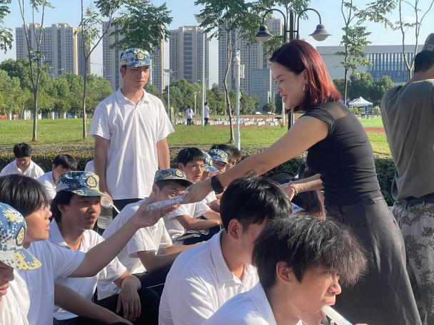 随后,学院领导们亲自将准备好的慰问品一一送到同学们手中。一瓶瓶解暑的饮料,一支支凉爽的冰淇淋,不仅为同学们带来了夏日的清凉,更送来了学院浓浓的关爱与温暖。同学们脸上洋溢着喜悦的笑容,纷纷表示感受到了学院大家庭的温暖,训练的热情更加高涨。