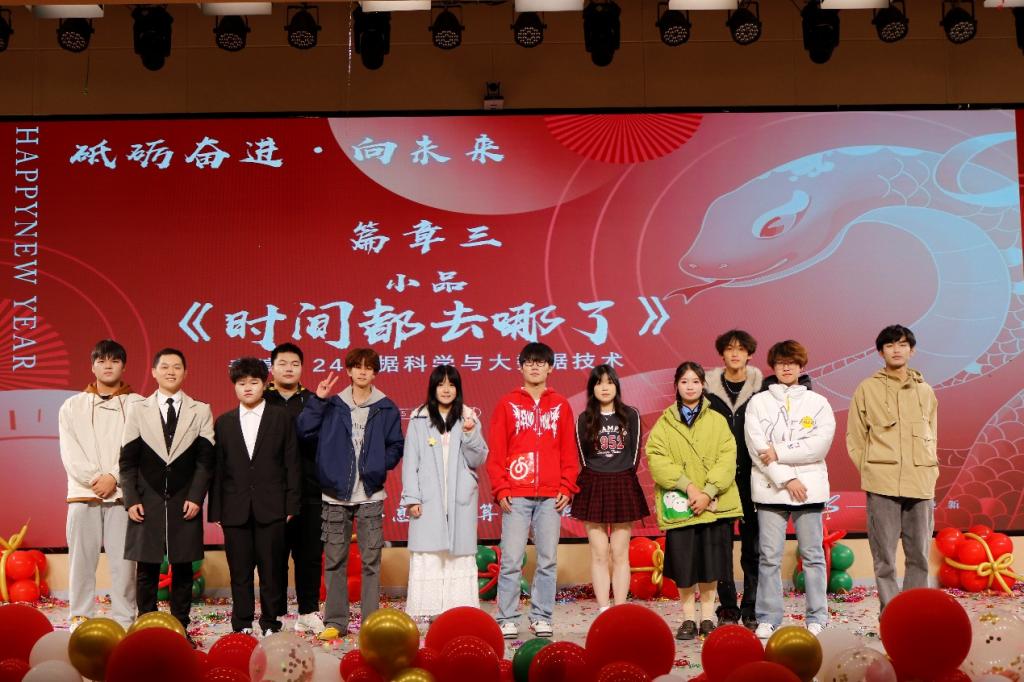 除了精彩的节目表演,晚会还设置了丰富的互动环节和惊喜大奖。同学们通过扫码积极参与,由老师上台抽取了幸运获奖者。经过一番紧张刺激的等待,最终揭晓了令人瞩目的一等奖、二等奖和三等奖得主。这一环节不仅为晚会增添了无限乐趣,也让大家感受到了新年的喜悦与期待。我们相信,我们的未来会有更多的精彩!