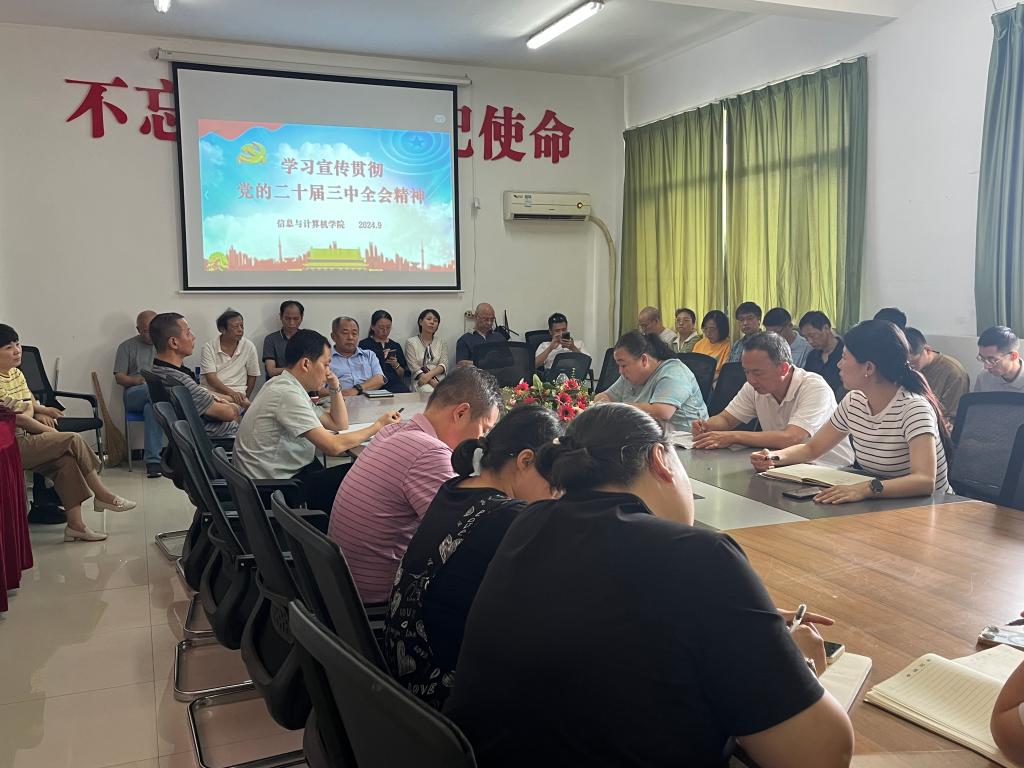 党的二十届三中全会报告再次强调教育、科技、人才是中国式现代化的基础性、战略性支撑。我院培养的是信息科技应用型人才,我们将紧紧围绕全会精神,结合学院实际,以更加坚定的信心、务实的作风和有力的举措,全面落实立德树人根本任务,大力弘扬教育家精神,五育融合,努力办好人民满意的教育。在党的坚强领导下,积极参与并推动中国式现代化的伟大征程,带领学院全体师生,紧跟时代步伐,不断开拓进取,健全党的制度建设,规范基层组织建设,加强具有创新实践能力的应用型人才培养,促进产教融合,建立就业体系,持续推进教育教学改革。