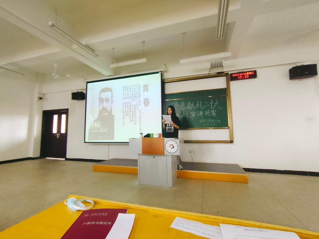 为进一步深化巩固党史教育学习成果,讴歌中国建设发展伟大成就,以更好的精神面貌迎接党的二十大胜利召开,6月8日下午,学院举办了“青春献礼二十大”主题征文演讲比赛。