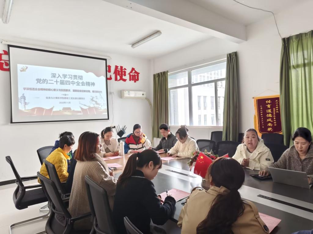在教工党支部活动现场,学院党总支书记武凌系统解读了党的二十届四中全会关于完善国家治理体系、推动科技创新与教育改革的重要部署。她强调:“全会提出‘强化现代化建设人才支撑’,作为高校教育工作者,我们须将全会精神融入课程建设与科研攻关,培养兼具家国情怀与实践能力的IT人才。”活动中,党员教师结合学科特色展开研讨,聚焦“新质生产力培养”“党建引领专业建设”等议题,提出优化实践教学体系、推进产教融合等建议,着力将理论学习成果转化为教书育人的实际行动。
