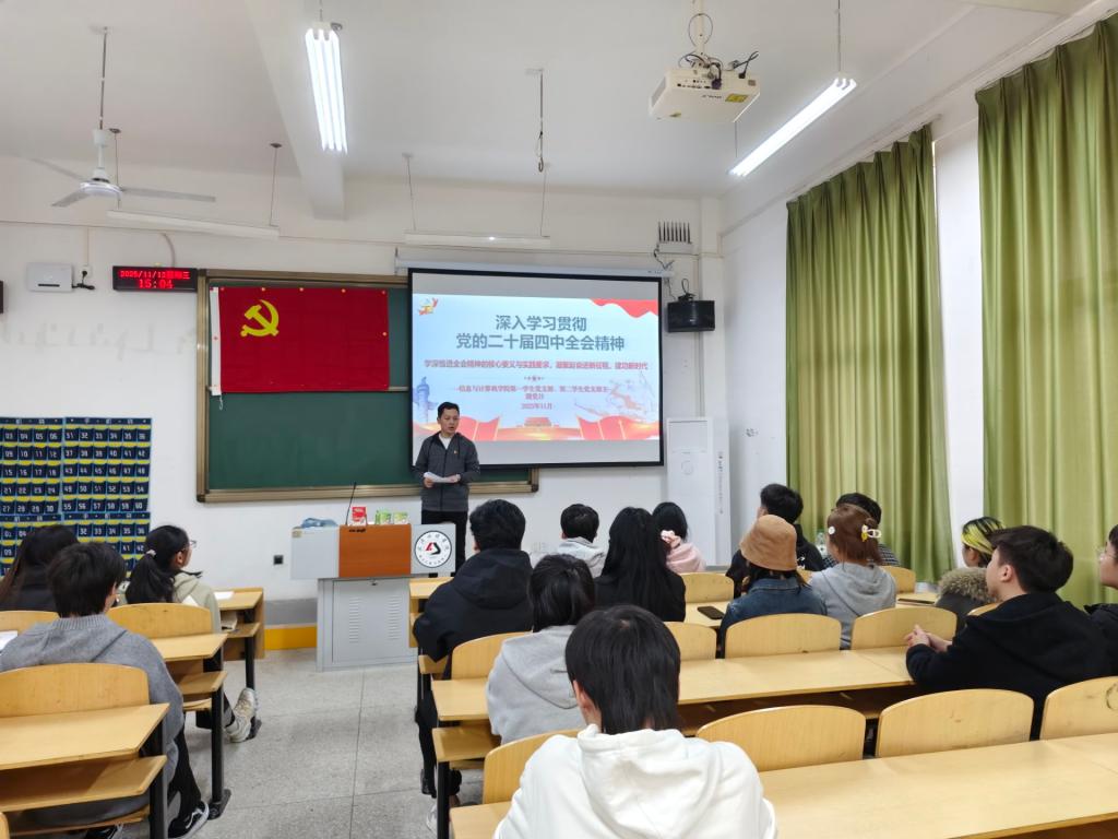 为深入学习贯彻党的二十届四中全会精神,强化基层党组织的政治引领作用,11月12日下午,77779193永利官网集团教工党支部、学生第一党支部和学生第二党支部分别在410会议室、5-104和5-106室同步开展11月主题党日活动。学校党委青年委员全程参与指导,与师生党员共同研习全会精神,深化思想共识。